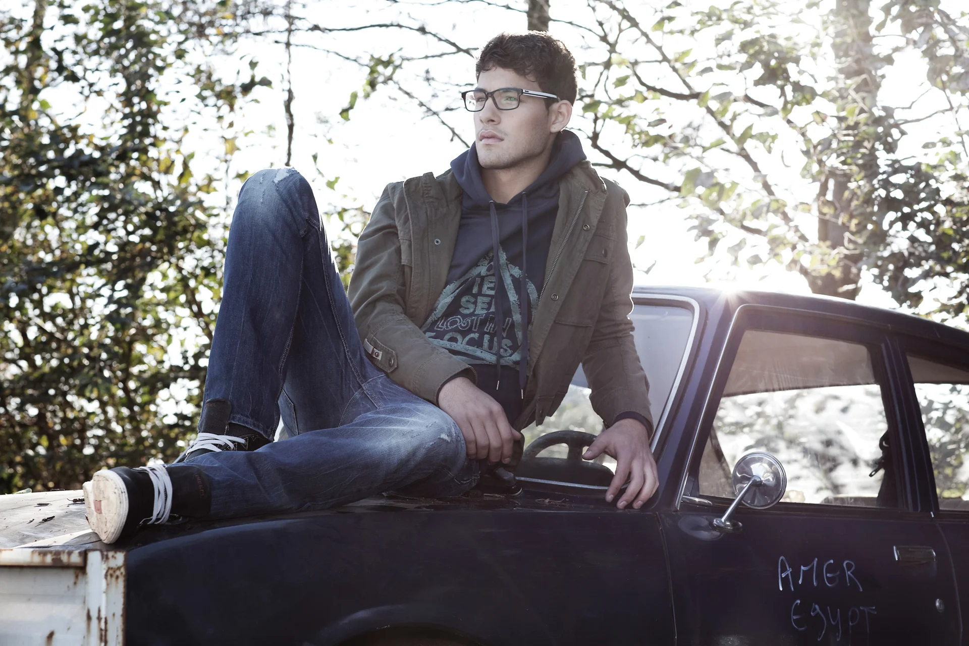 Het Italiaanse merk is na 40 jaar nog steeds een vaste waarde voor casual fashion. Voor deze shoot bezochten we een schrootplaats voor auto’s om de ruwe kant van deze lijn in de verf te zetten.
